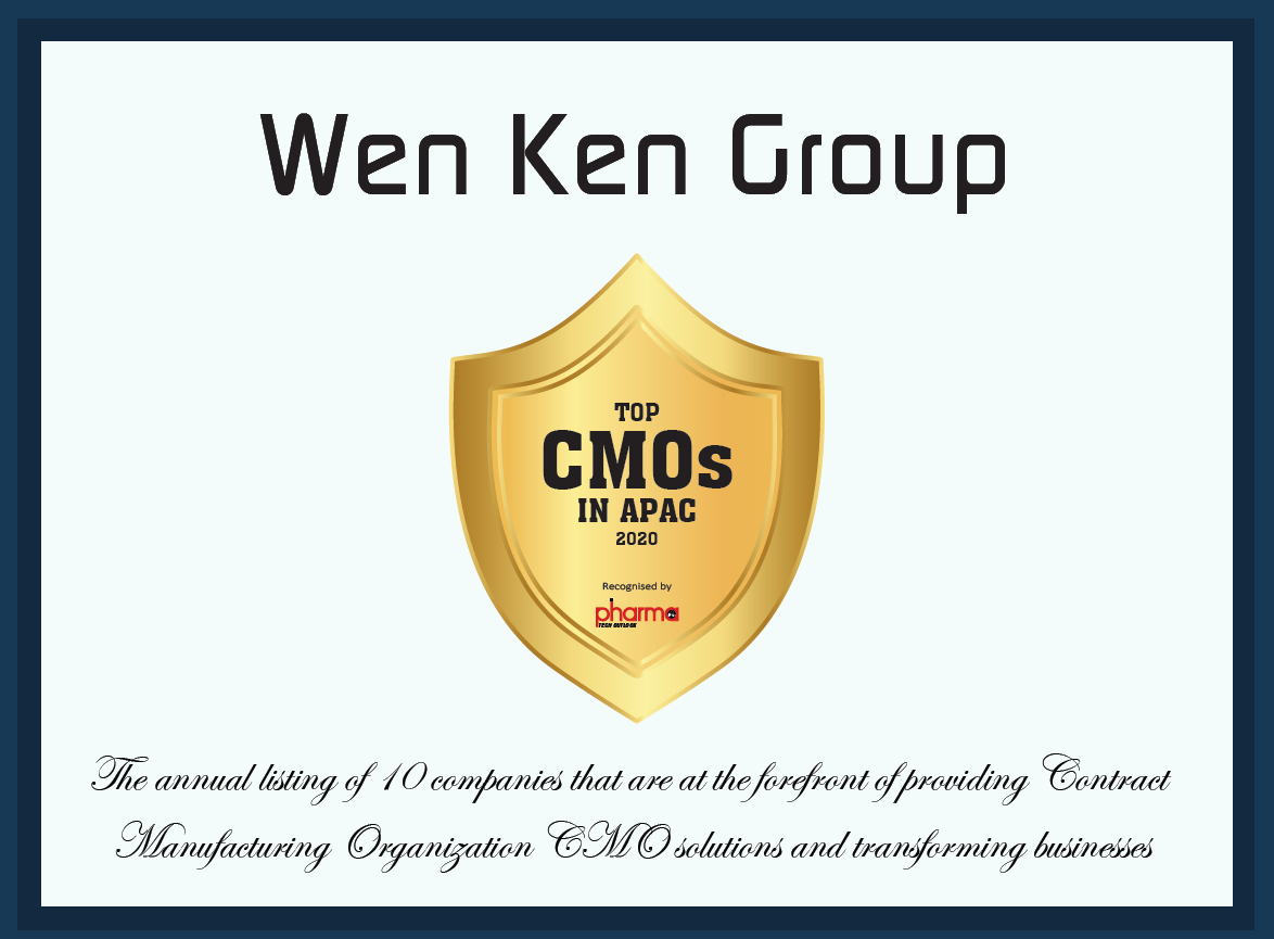 In 2020, Wen Ken Group was selected by PharmaTech Outlook Magazine as one of Asia Pacific 2020’s Top 10 Contract Manufacturing Organization (CMO). Till today, we are still continuously upgrading ourself in achieving consistent and meticulous execution for contract manufacturing projects.